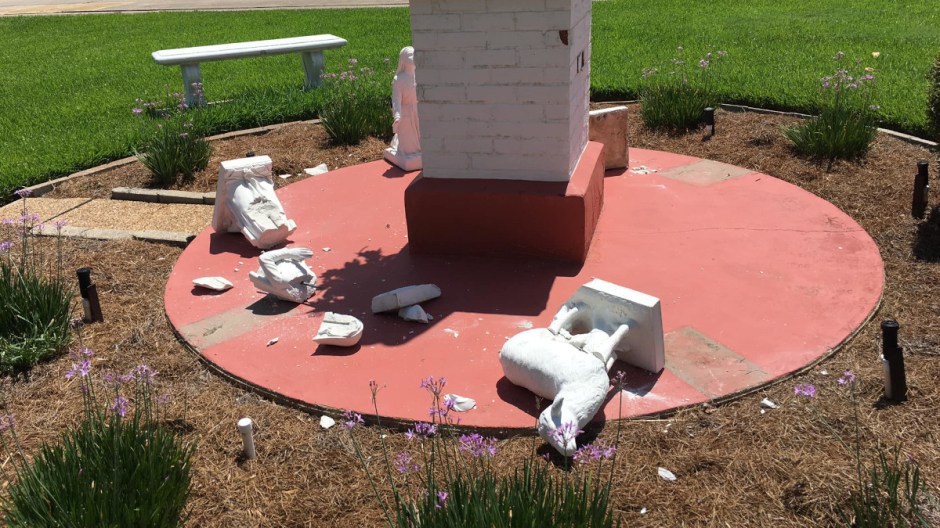 The statues have been at the church since the 1960’s. A police spokesperson said video shows a man lifting, then smashing the statues the morning of July 22.