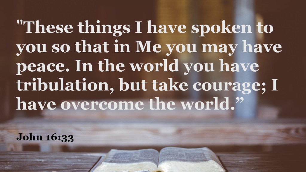 The world offers trouble, not lasting peace. Yet believers can face these things with courage because the outcome is known. Jesus has overcome the world. His victory is certain, and those who belong to him share in it.