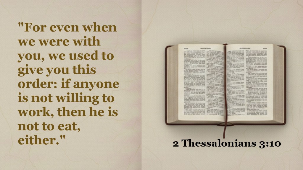 The Bible has a lot to say about work and helping others. In 2 Thessalonians 3, Paul writes that anyone who refuses to work should not eat. This is a direct statement that applies to people who are able to work but choose not to.